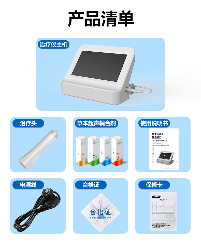 主要由主机,显示器,治疗头,配套软件和电源线组成。